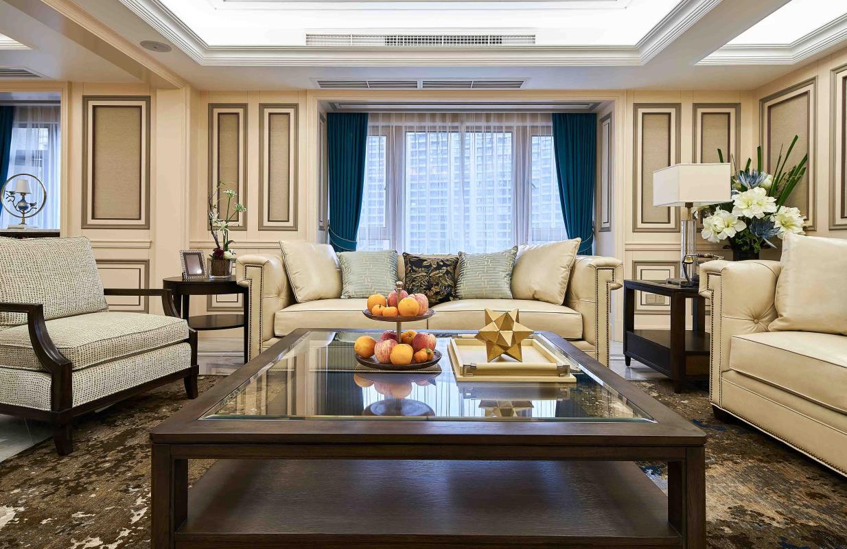 歲月極美,在于它必然流逝。而流逝的歲月就像山川河流終將匯聚到這間屋子。人的一生除了工作,大部分時間都在家中度過。而這間房子每一處都記錄了一段情感,每一物都承載了一個故事。本案業主想要做美式風格的空間,但又不希望像傳統美式那么厚重。因此設計師將其主基調設為簡美風格,使整體更簡約大氣。 客廳的整...