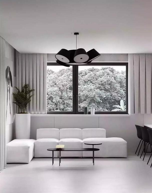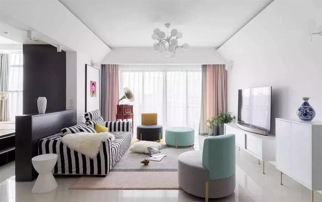 層次分明、立體感強(qiáng)。常與射燈、筒燈、燈帶搭配使用,適合大空間的客廳。