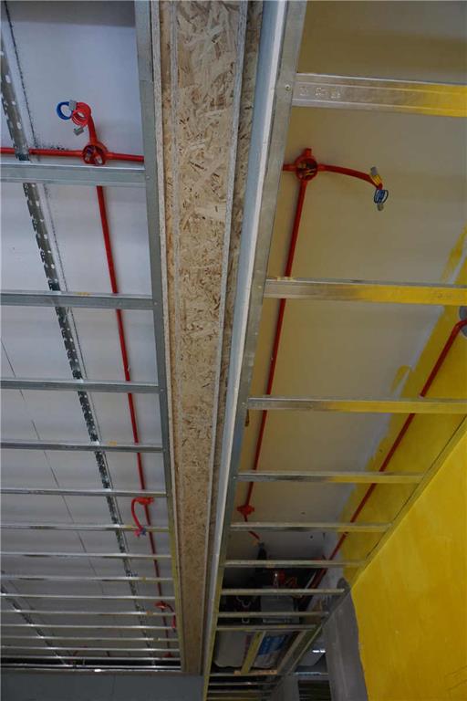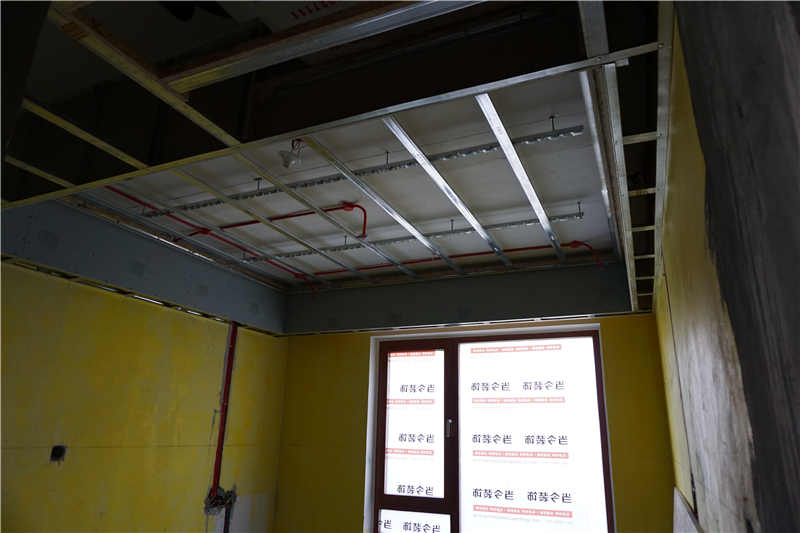 水路、電路、輕鋼龍骨吊頂按照公司標(biāo)準(zhǔn)施工,布線清晰、規(guī)范;龍骨間距標(biāo)準(zhǔn)、均勻;