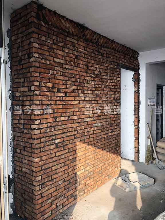 ▲純紅磚砌墻(整體比輕磚更牢固,人工費用更高)